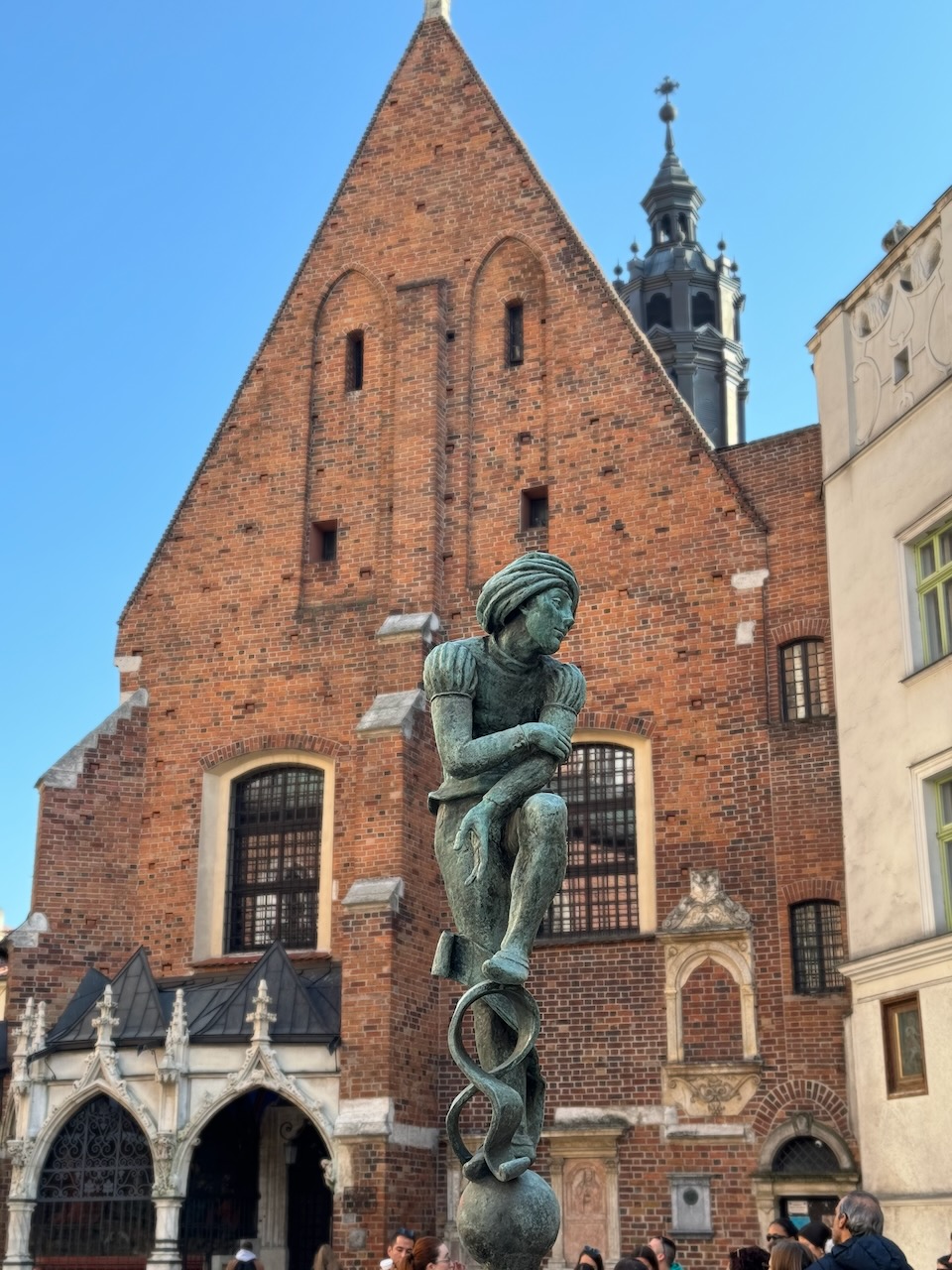 Stare Jatki, or the Old Butchers’ Stalls, is a historic street established in 1242, lined with picturesque buildings that now host art galleries and craft shops. A notable feature is the Monument to Slaughtered Animals, a sculpture honoring the animals once sold here, making it a popular photo spot.