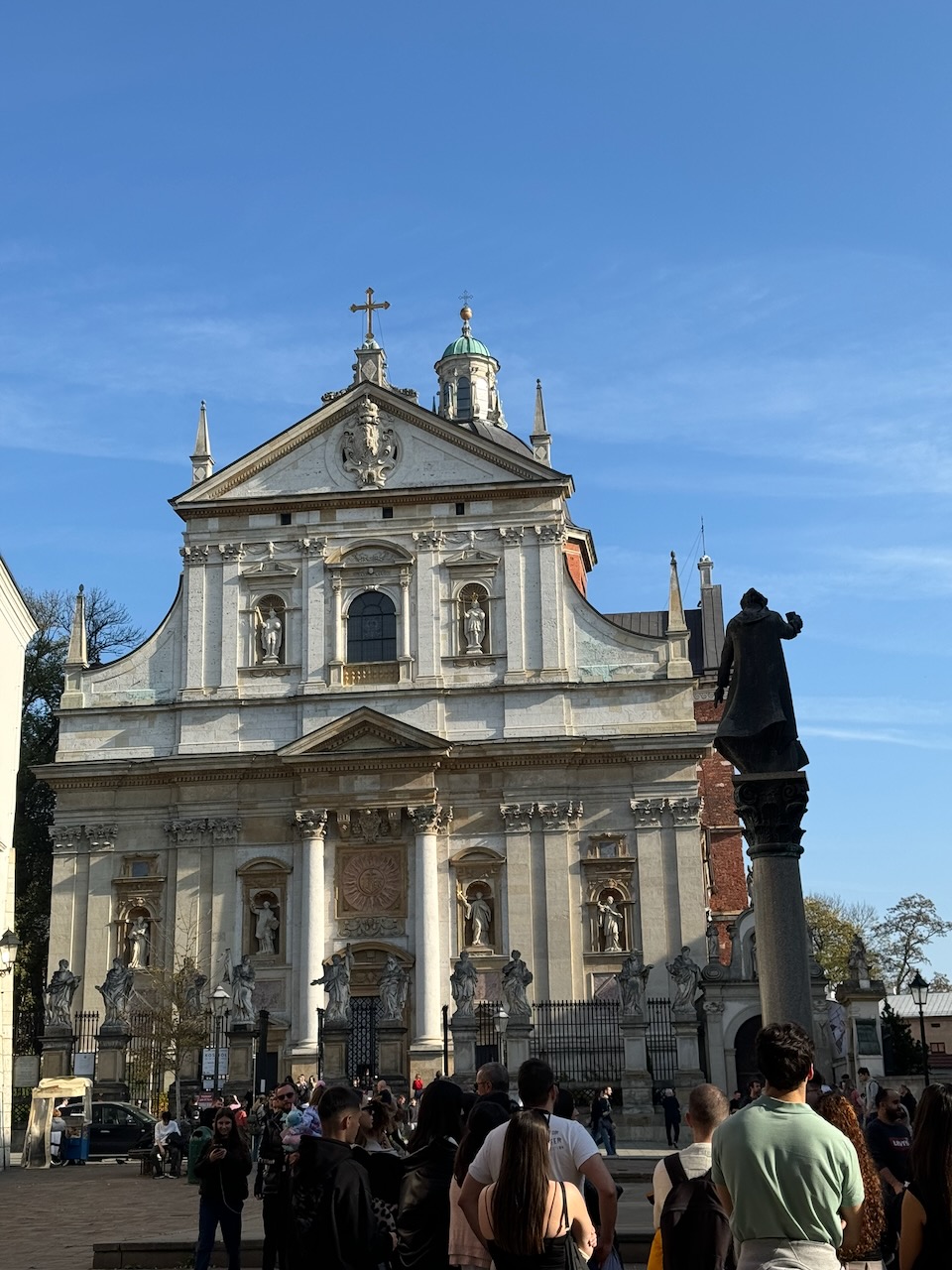 And one of the main highlights of the market square is St. Mary’s Basilica. It is one of Krakow’s most iconic landmarks. This Gothic church, with its distinctive twin towers, has been a central part of the city’s religious and cultural life since the 14th century.